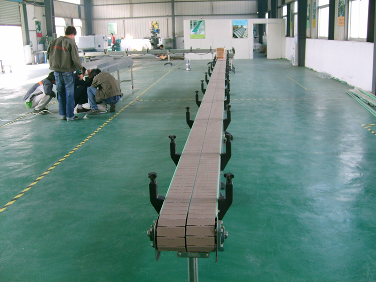 鏈板輸送機(jī)在進(jìn)行安裝時(shí)也需要注意以下相關(guān)事項(xiàng),由于鏈板輸送機(jī)的制動(dòng)裝置反應(yīng)靈敏可靠,其限位夾緊裝置也應(yīng)該能夠獨(dú)立受工作狀態(tài)下最大風(fēng)力而不致被風(fēng)吹動(dòng)。鏈板輸送機(jī)的機(jī)架安裝首先是從頭架開始的、然后順次安裝各節(jié)中間架,最后裝設(shè)尾架。根據(jù)相關(guān)的規(guī)定和原則,我們的生產(chǎn)的鏈板生產(chǎn)線都是采用標(biāo)準(zhǔn)頂板鏈為承載面,由電機(jī)減速機(jī)為動(dòng)力傳動(dòng),支承在專用導(dǎo)軌當(dāng)中。頂板鏈也可以進(jìn)行選碳鋼、不銹鋼或是熱塑鋼鏈,選用不同形狀的平板形式,以完成平面輸送,平面轉(zhuǎn)彎、提升下降等各種功能。