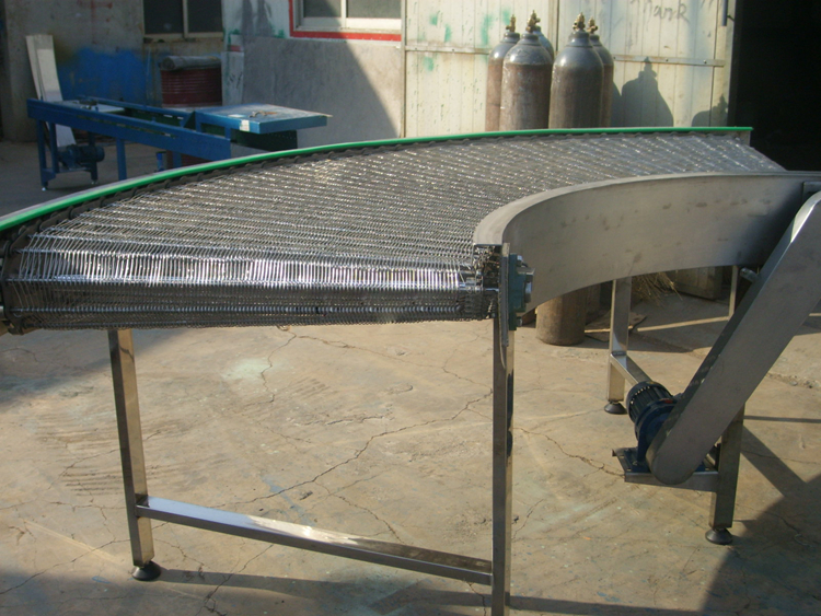 對(duì)于大功率長(zhǎng)距離轉(zhuǎn)彎網(wǎng)帶輸送機(jī)而言,動(dòng)態(tài)變化非常明顯,很難精確控制,一般需要采用多點(diǎn)驅(qū)動(dòng)的方式,即在輸送帶的多部位設(shè)置驅(qū)動(dòng)電機(jī),共同驅(qū)動(dòng)轉(zhuǎn)彎網(wǎng)帶輸送機(jī)。因網(wǎng)帶是粘性材料,網(wǎng)帶具有彈性,網(wǎng)帶張力在傳送過(guò)程當(dāng)中具有滯后性,如果使用單點(diǎn)驅(qū)動(dòng),驅(qū)動(dòng)點(diǎn)附近張力非常大,而網(wǎng)帶的尾部卻不能及時(shí)獲得驅(qū)動(dòng)力,即出現(xiàn)前部網(wǎng)帶張力過(guò)大,尾部卻沒(méi)有受力,嚴(yán)重時(shí)會(huì)出現(xiàn)斷帶現(xiàn)象。所以對(duì)于大軸功率、長(zhǎng)距離轉(zhuǎn)彎網(wǎng)帶輸送機(jī)不能使用單點(diǎn)驅(qū)動(dòng),只能采用多點(diǎn)驅(qū)動(dòng)轉(zhuǎn)彎網(wǎng)帶輸送機(jī)的方式,這為大功率長(zhǎng)距離轉(zhuǎn)彎網(wǎng)帶輸送機(jī)的發(fā)展奠定基礎(chǔ)。